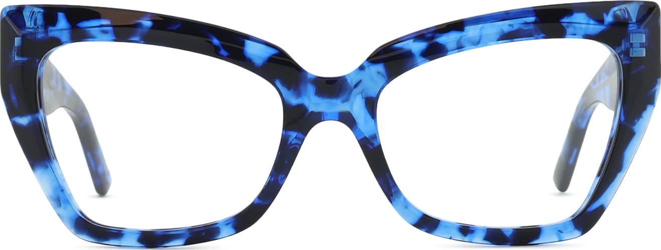 • Die blaue Farbe der Brillenfassung passt perfekt zu kühlen Hauttönen und hellbraunem, schwarzem oder hellblondem Haar.