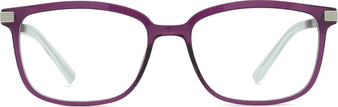 Die lila Farbe der Brillenfassung passt perfekt zu kühlen Hauttönen und