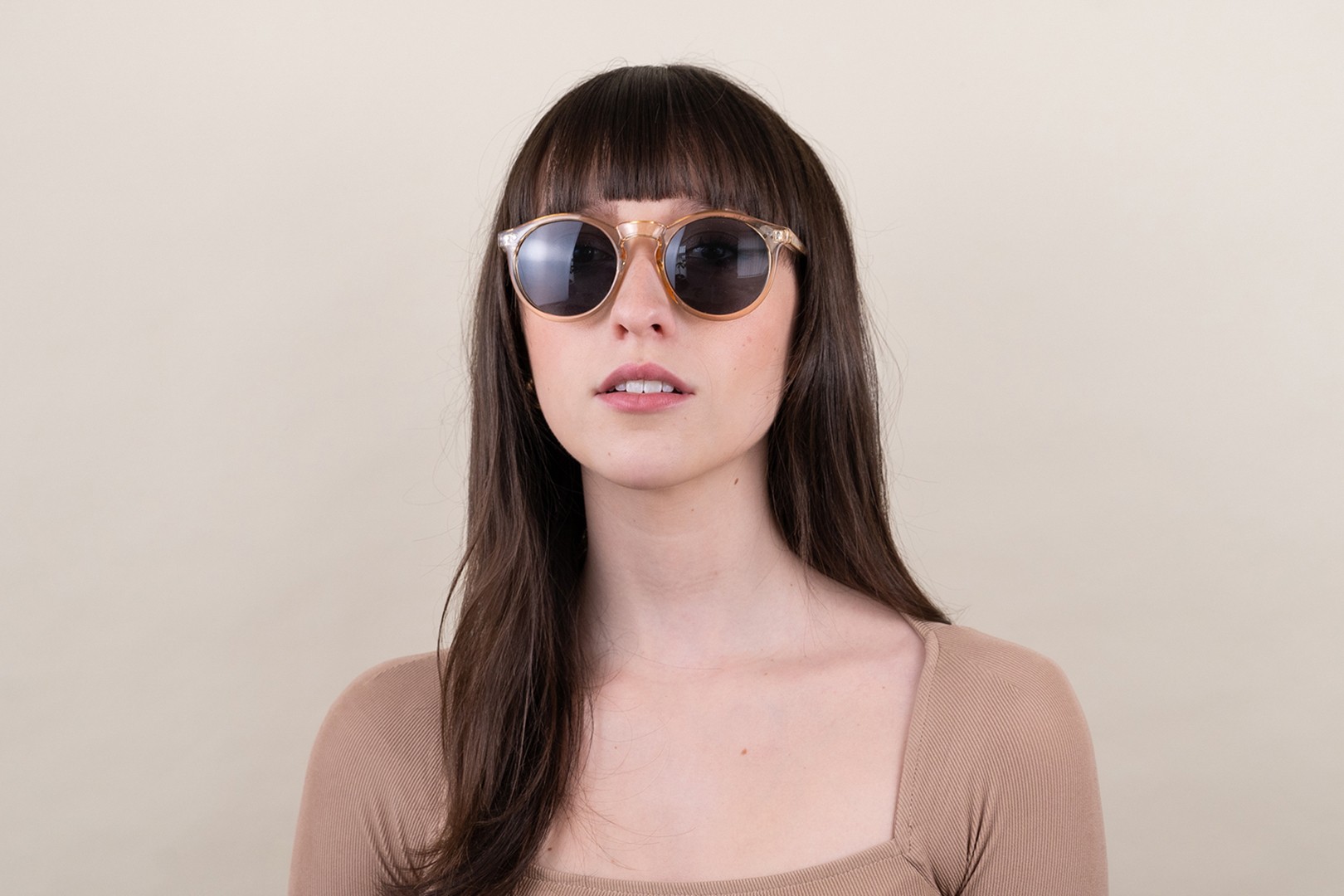 Runde Sonnenbrillenfassungen sind eine ideale Wahl für Menschen mit einer quadratischen oder