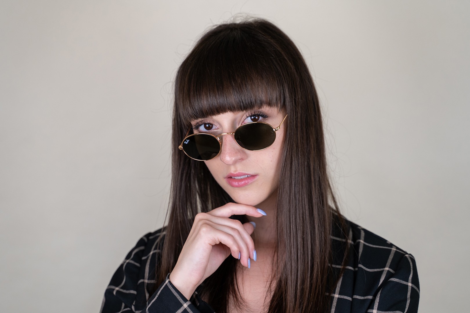 - Die goldene Farbe des Rahmens passt perfekt zu warmen Hauttönen und dunkelbraunem Haar.