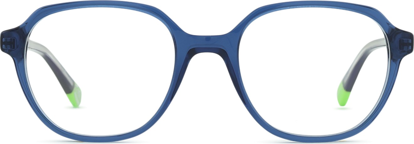 - La couleur bleue de la monture s'accorde parfaitement avec tous les teints et des cheveux châtain clair, noirs ou blonds clairs.